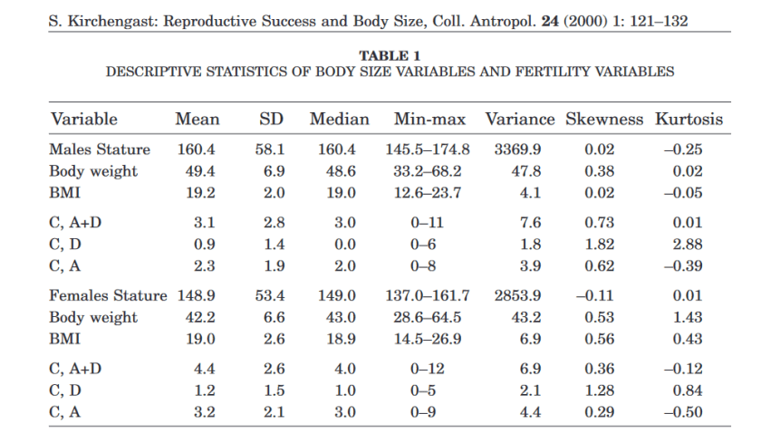 Differential Reproductive Success and Body Size in !Kung San People from Northern Namibia